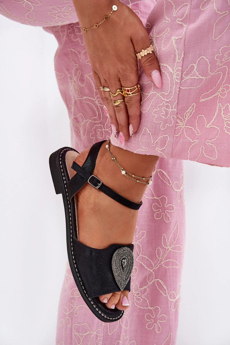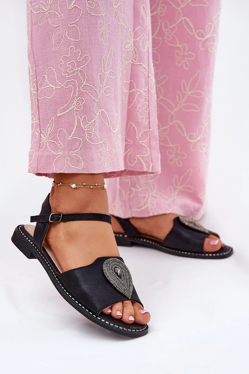 Dámské Sandály Na Plochém Podpatku S Ozdobou model 21696821 Černé - S.Barski