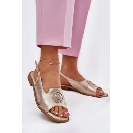 Dámské sandály na plochém podpatku s ozdobou model 21698206 zlaté - S.Barski