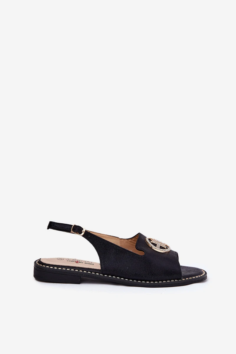 Dámské Sandály Na Plochém Podpatku S Ozdobou S.Barski KV51-002 Černé