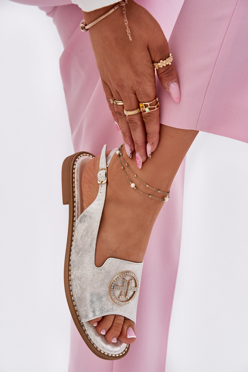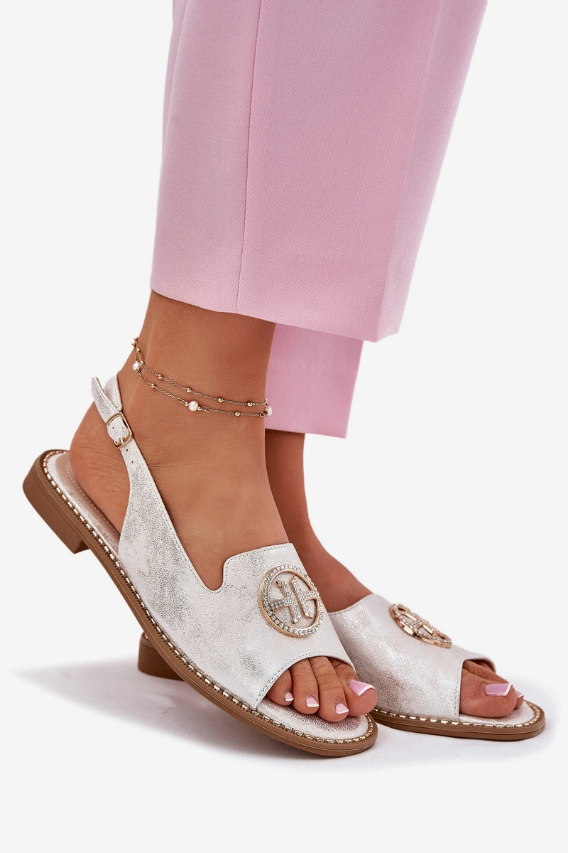 Dámské Sandály Na Plochém Podpatku S Ozdobou S.Barski KV51-002 Stříbrné