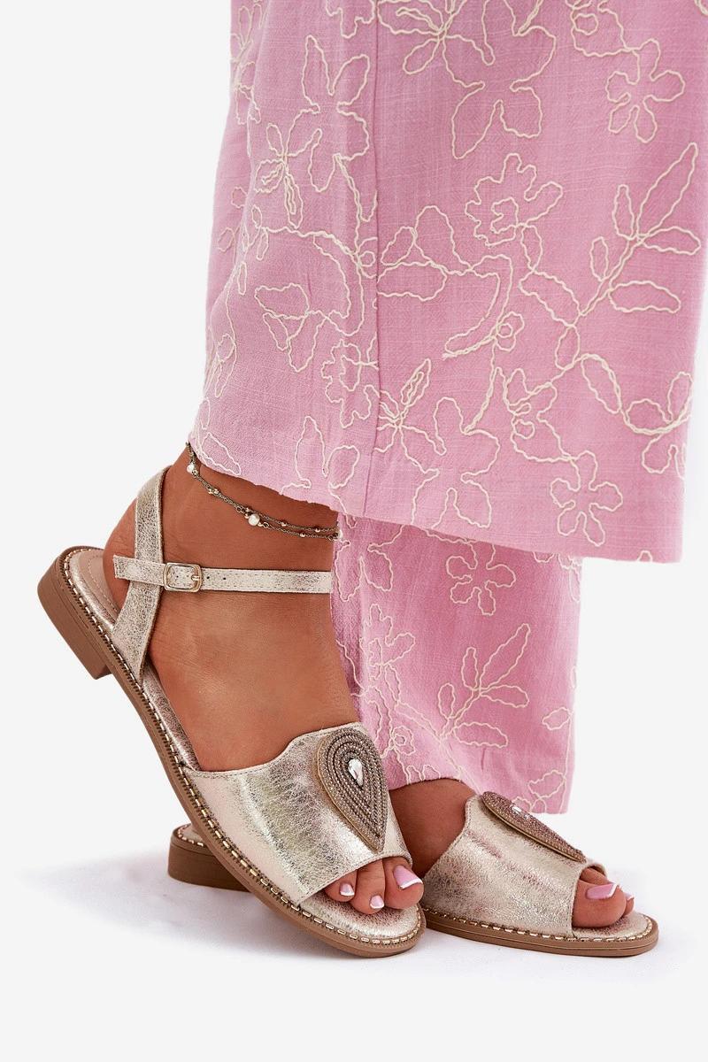 Dámské Sandály Na Plochém Podpatku S Ozdobou S.Barski KV51-098 Zlaté