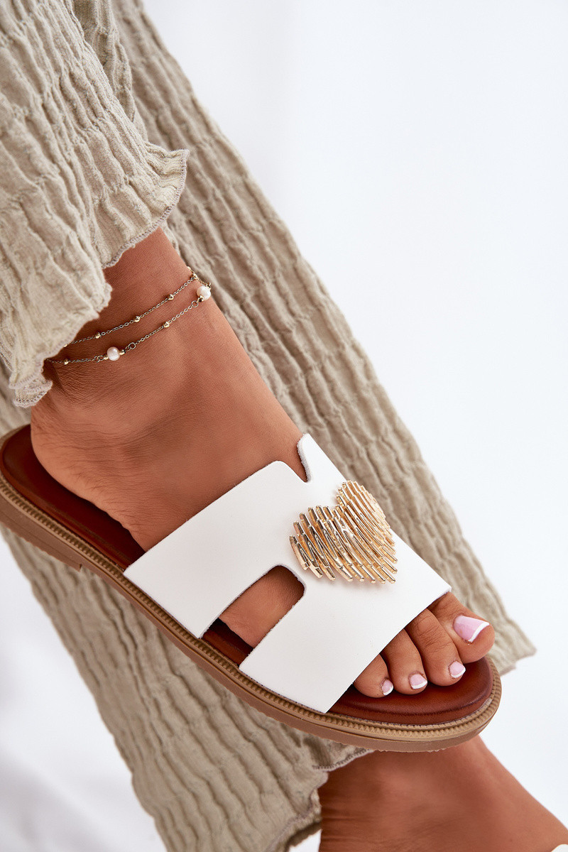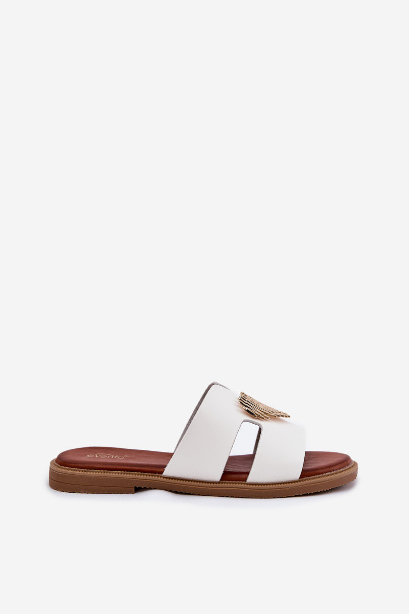 Dámské sandály na plochém podpatku se zlatou ozdobou bílé model 21697094 - EVENTO