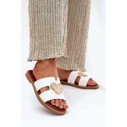 Dámské pantofle vyrobené z eko kůže jsou skvělou volbou na teplé dny. Uloženy na plochém podpatku poskytují pohodlí a lehkost po celý den. Vpředu se nachází roztomilá ozdoba ve tvaru srdce, která jim dodává jemné kouzlo. Měkká stélka zaručuje pohodlí, takže tyto pantofle budou skvělou volbou pro letní stylizace, spojující eleganci s funkčností. Ideální na každodenní výlety v slunečných dnech! Při výběru velikosti se řiďte tabulkou velikostí.