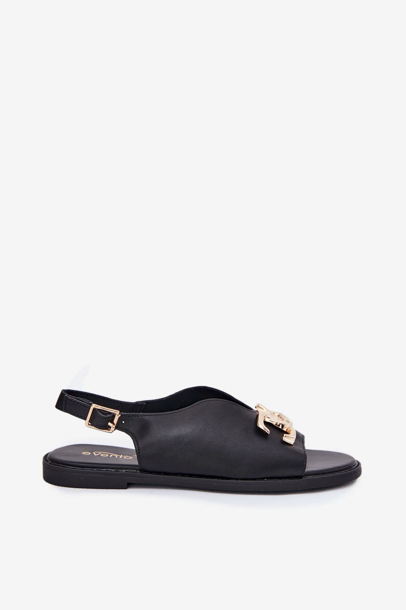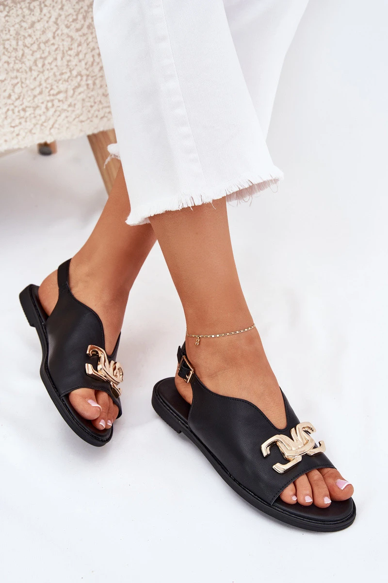 Dámské Sandály Na Plochém Podpatku Se Zlatou Ozdobou Černé Amelira