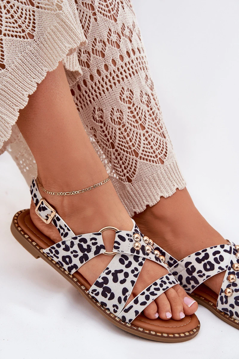 Dámské Sandály Na Plochém Podpatku Se Zlatými Hroty Bílo-Černé Zanira