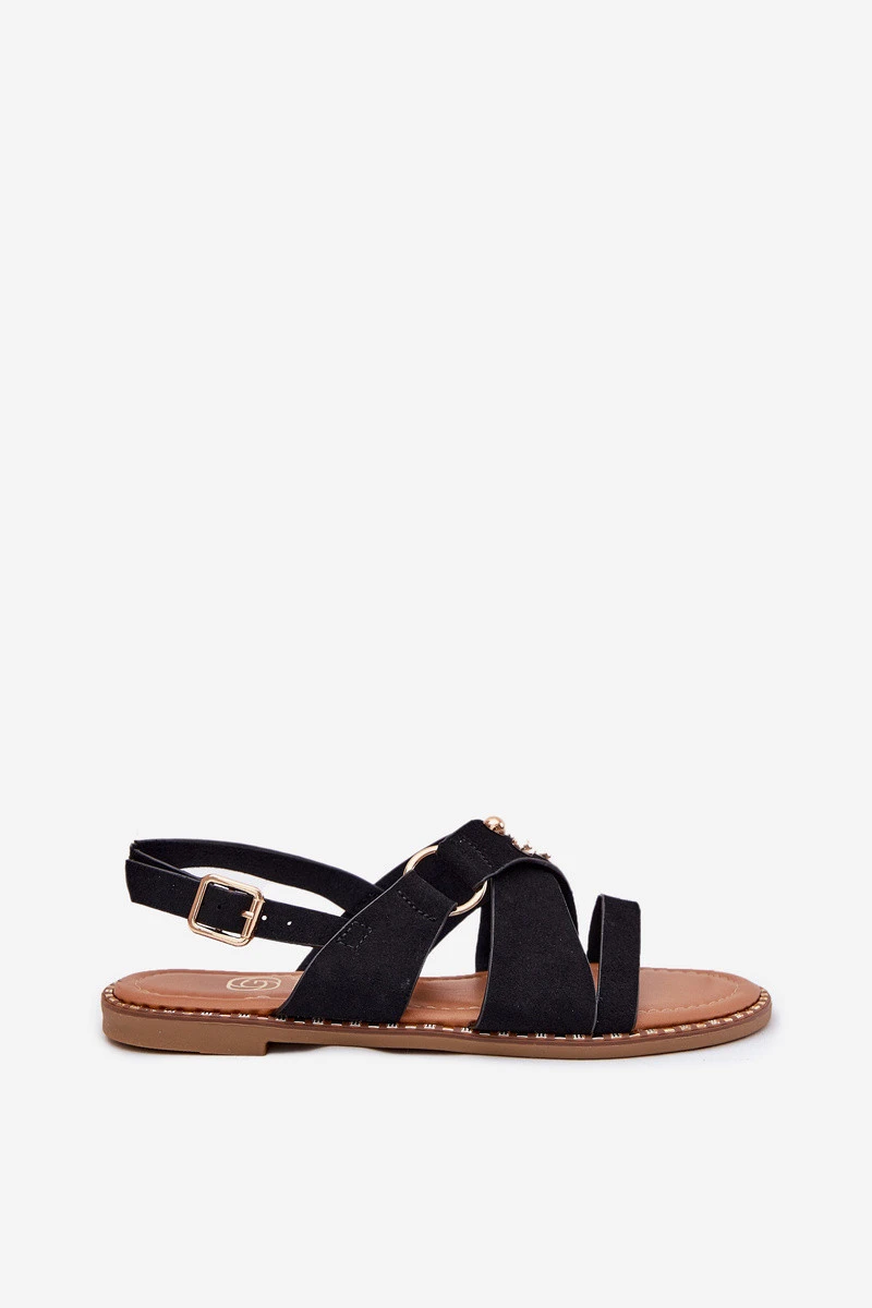 Dámské sandály na plochém podpatku se zlatými hroty černé Zanira