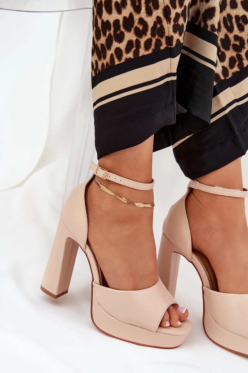 Dámské Sandály Na Podpatku A Platformě Eko Kožené Béžové model 21688872 - Boto