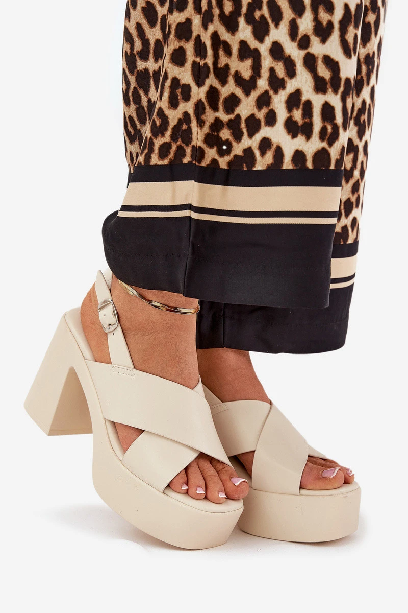 Dámské Sandály Na Podpatku A Platformě Z Eko Kůže Světle Béžové Annavin