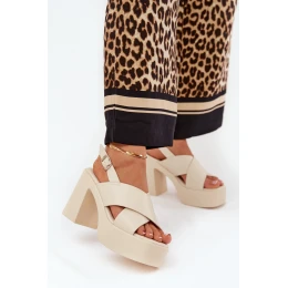Dámské Sandály Na Podpatku A Platformě Z Eko Kůže Světle Béžové model 21688907 - Boto