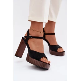 Dámské sandály na podpatku a platformě z eko semiše Černé model 21943416 - Boto