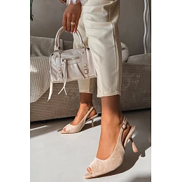 Dámské sandály na podpatku Eko semiš Béžové model 22092008 - Boto