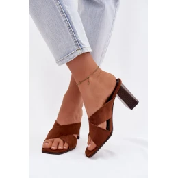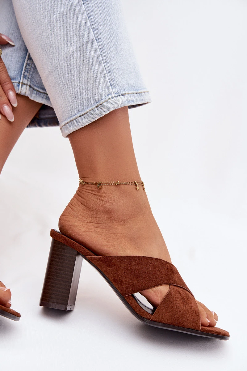 Stylové dámské nazouváky vyrobené z eko semiše. Vepředu jsou dva proplétající se pásky, které efektně zvýrazňují nohu a dodávají celku módní charakter. Podpatek typu sloupek zajišťuje stabilitu a pohodlí při nošení, zároveň dodává siluetě lehkost. Tento model se skvěle hodí jak do každodenních, tak i do elegantnějších letních stylizací. Při výběru velikosti se řiďte tabulkou velikostí.