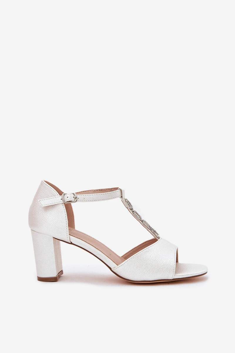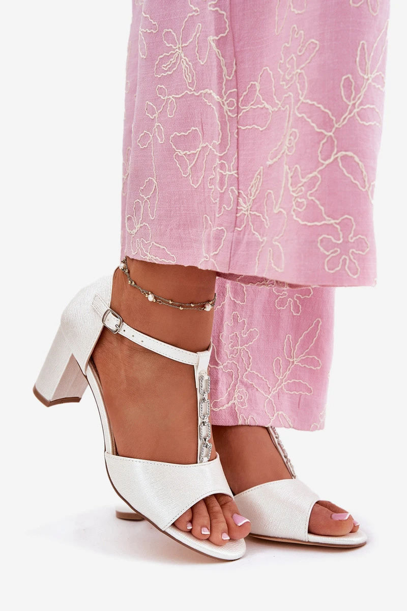 Dámské Sandály Na Podpatku S Dekorativním Páskem Eko Kůže Bílé Triavera