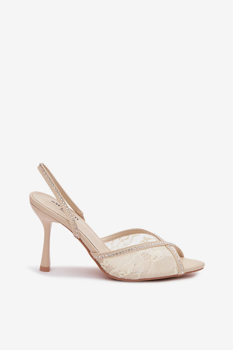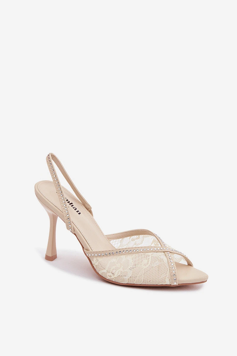 Dámské sandály na podpatku s krajkou a ozdobami Béžové Melivelle