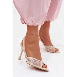 Dámské sandály na podpatku s krajkou a ozdobami Béžové model 22103152 - Boto