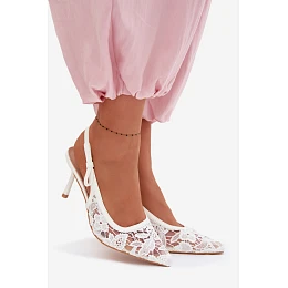Dámské sandály na podpatku s krajkou bílé Pelivelle