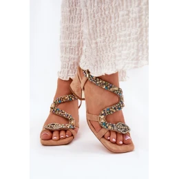 Dámské Sandály Na Podpatku S Krystaly Artiker 56C1377 Béžové