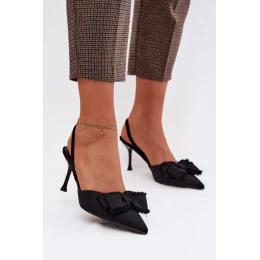 Dámské sandály na podpatku s mašlí Černé model 21997915 - Boto
