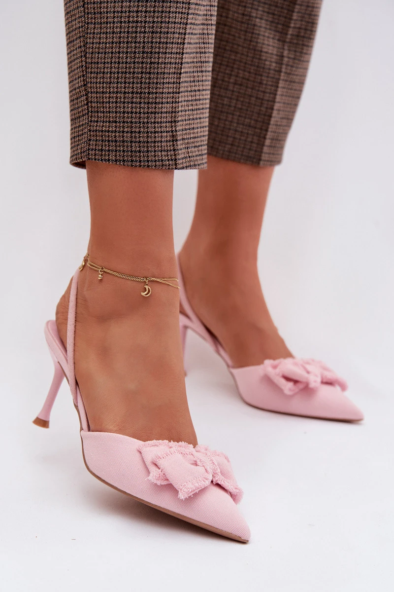 Dámské sandály na podpatku s mašlí Růžové Hestia