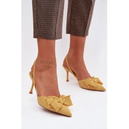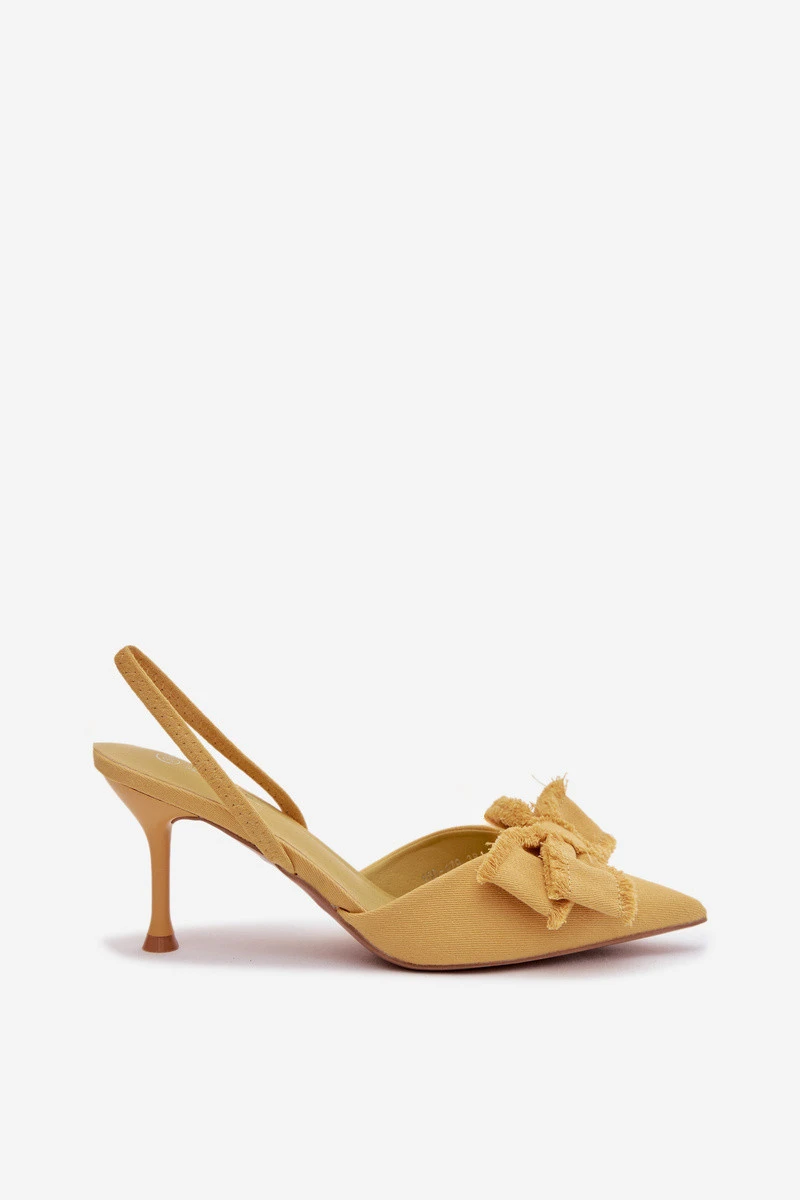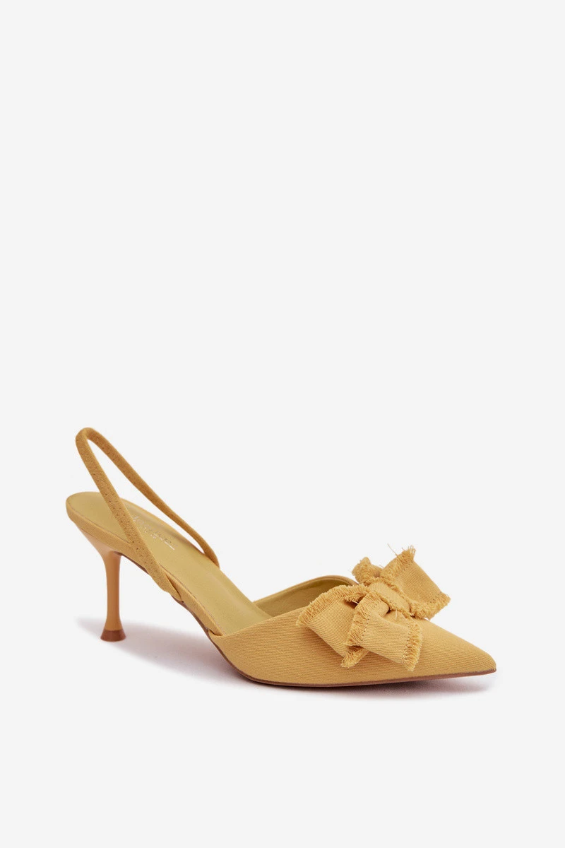 Dámské sandály na podpatku s mašlí Žluté Hestia