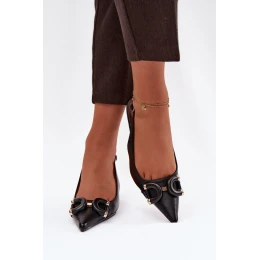 Dámské sandály vyrobené z eko kůže jsou stylovou volbou na výjimečné příležitosti. Uzavřené, špičaté nosy jim dodávají klasický a ženský charakter, ozdobný detail vpředu přitahuje pozornost a zdůrazňuje eleganci modelu. Tenká jehla krásně zeštíhluje siluetu a dodává celkovému vzhledu šmrnc. Model na přezku s nastavitelým páskem umožňuje dokonalé přizpůsobení noze, zajišťuje pohodlí a stabilitu při nošení. Sandály jsou ideální jako doplněk k mnoha stylizacím, elegantním šatům a outfitům na zvláštní příležitosti. Při výběru velikosti se řiďte tabulkou velikostí.