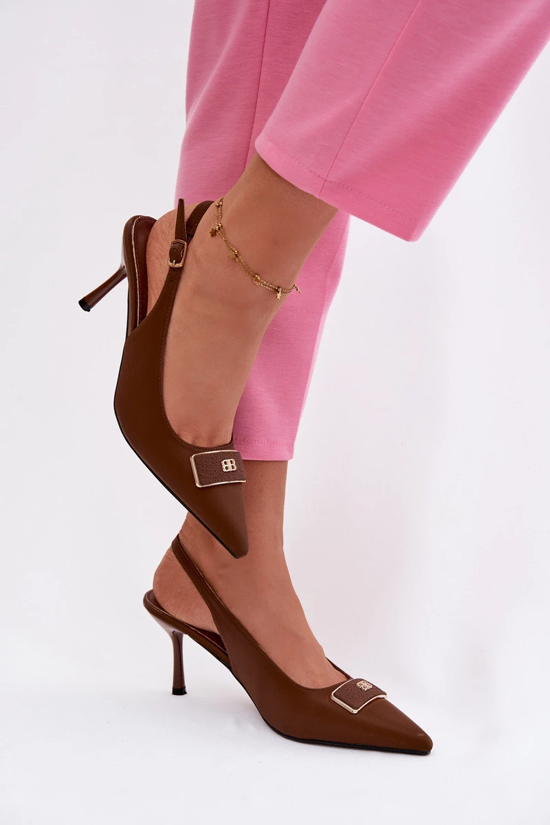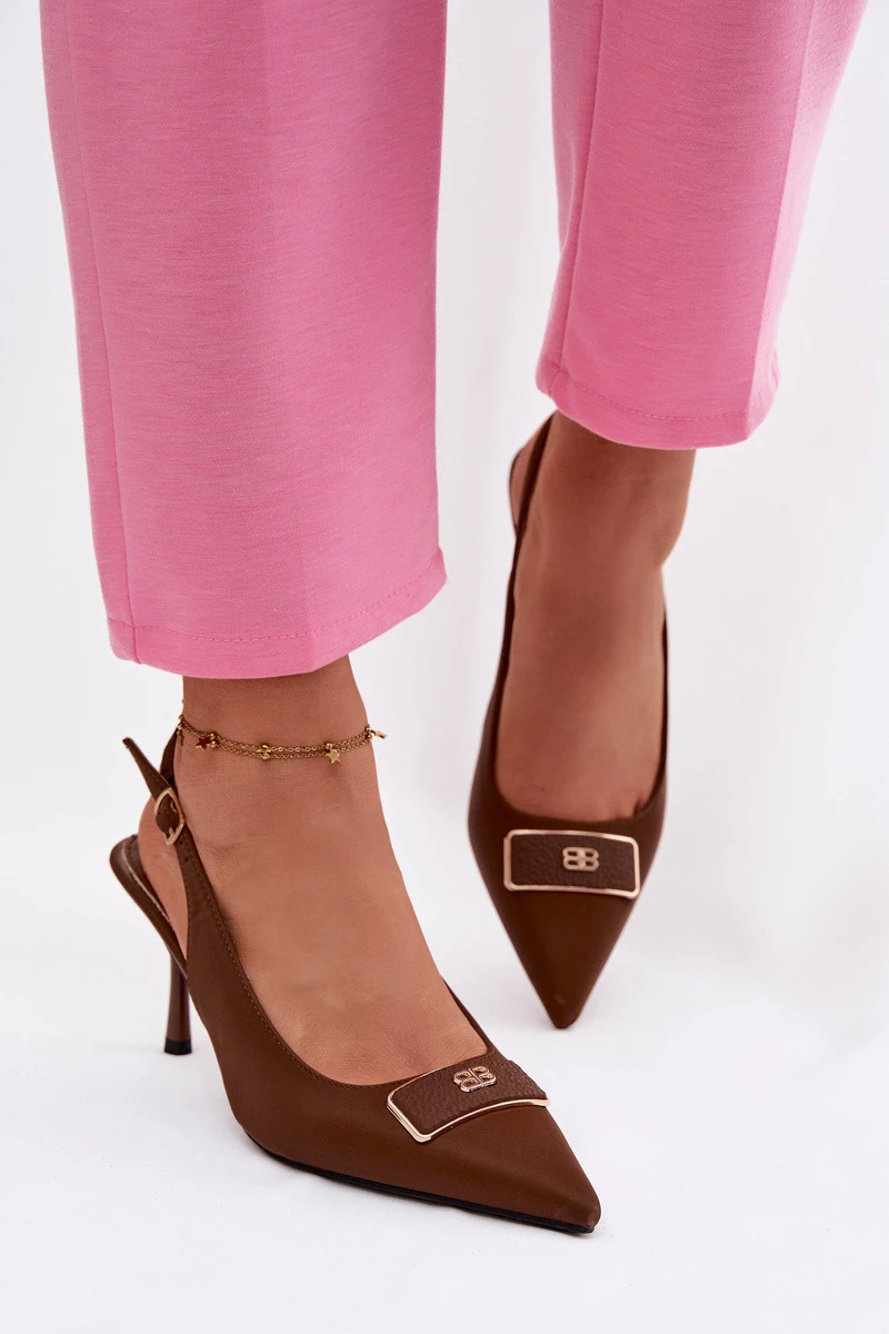 Dámské sandály na podpatku s ozdobným detailem Čokoládové model 21937509 - Boto