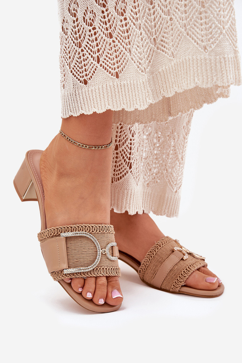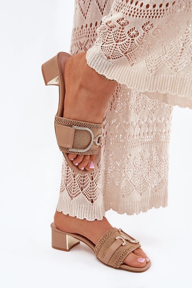 Dámské Sandály Na Podpatku S Ozdobným Detalem Tmavě Béžové model 21699808 - Boto