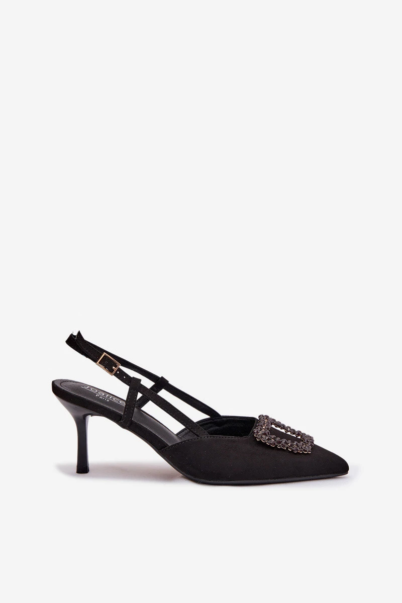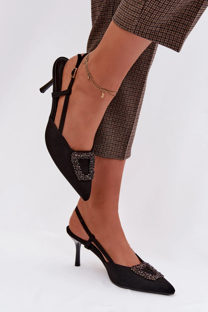 Elegantní dámské sandály z eko semiše jsou stylovou volbou na výjimečné příležitosti. Tenký podpatek typu jehla a špičaté špičky krásně zeštíhlují postavu a dodávají celkovému vzhledu ženský charakter. Dekorativní detail vpředu přitahuje pozornost a zdůrazňuje elegantní vzhled modelu. Nastavitelný pásek s přezkou umožňuje dokonalé přizpůsobení sandálů noze, zajišťující pohodlí při nošení. Tyto sandály se skvěle hodí na večírky, oslavy a večerní vycházky. Při výběru velikosti se řiďte tabulkou velikostí.
