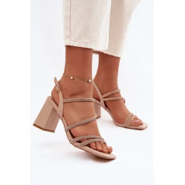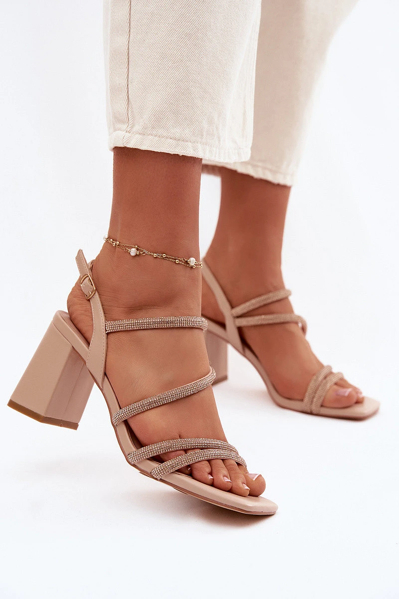 Dámské sandály na podpatku s pásky a kamínky Béžové model 22067121 - Boto