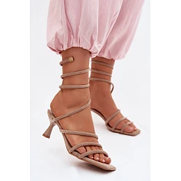 Dámské sandály na podpatku s pásky Béžové model 22103005 - Boto