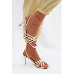 Dámské sandály na podpatku s pásky béžové Velivelle