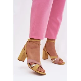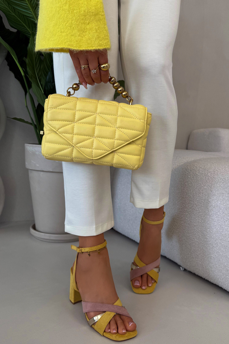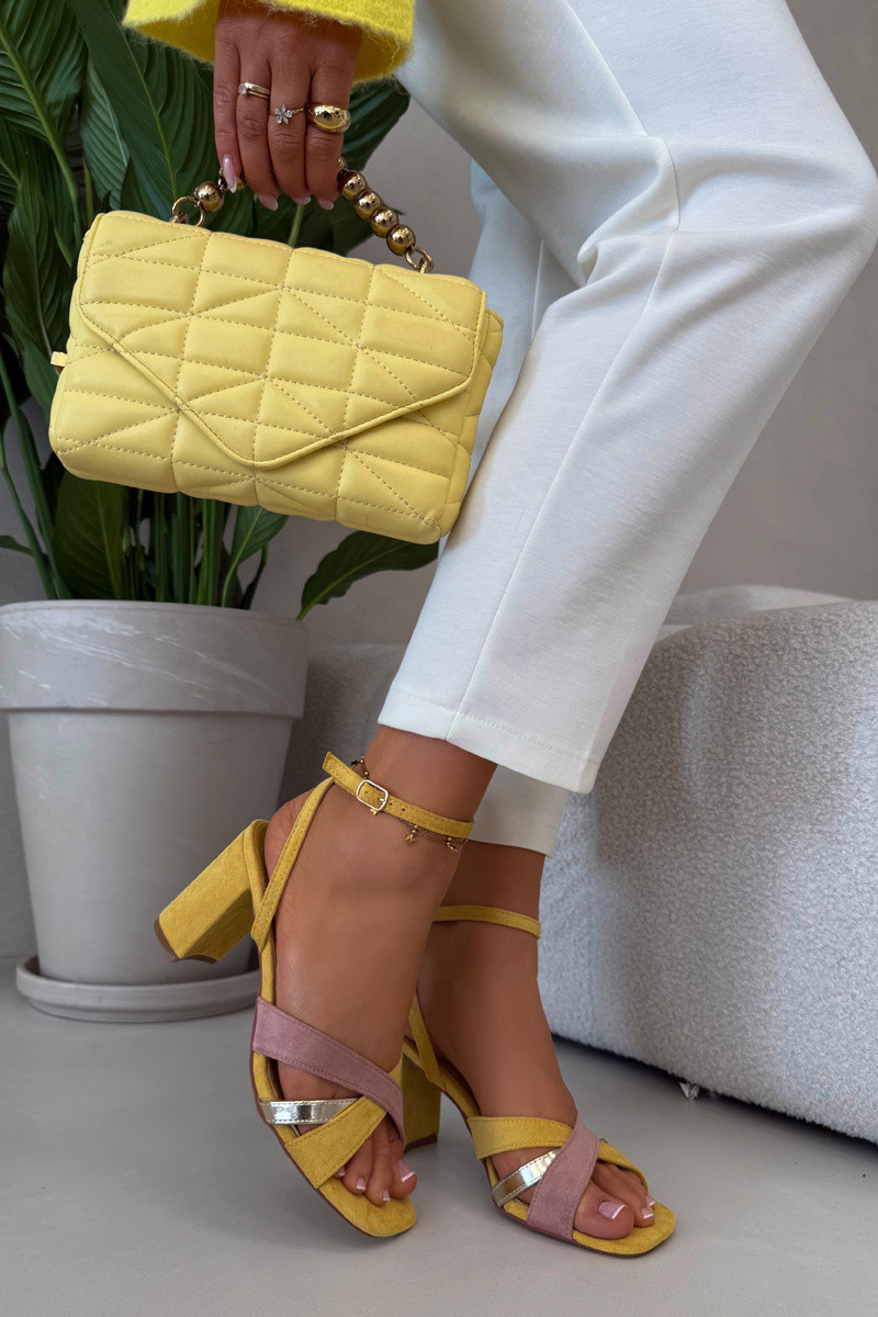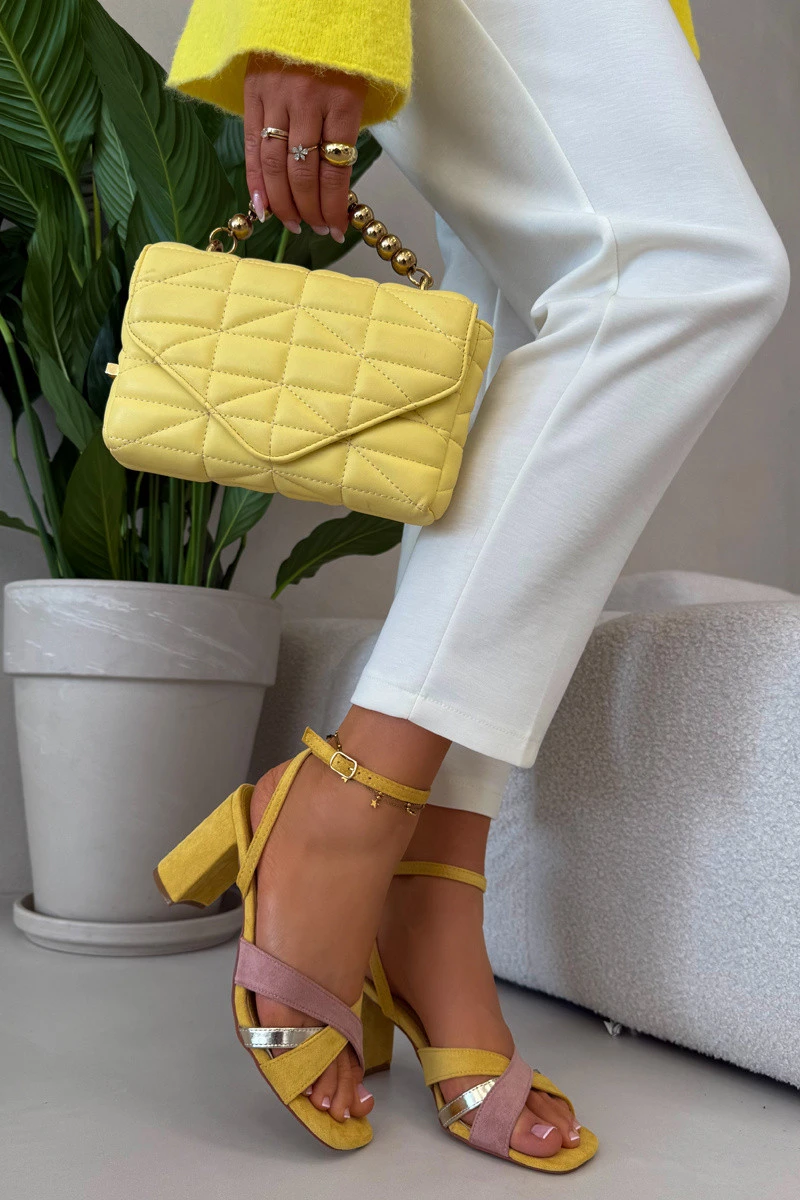 Dámské sandály na podpatku s pásky Eko semiš žluté model 21937474 - Boto