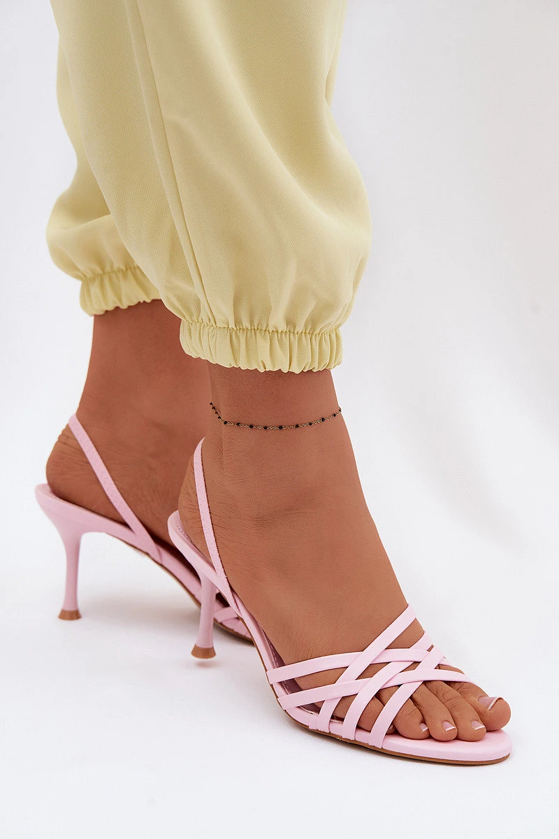 Dámské sandály na podpatku s pásky růžové model 22125474 - Boto