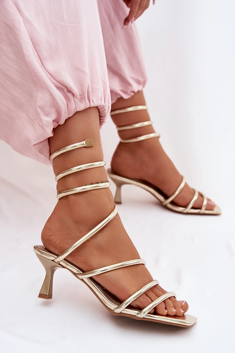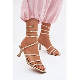 Dámské sandály na podpatku s pásky Zlaté model 22102998 - Boto