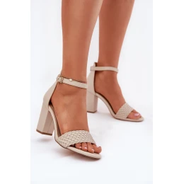 Dámské sandály na podpatku s pleteným páskem béžové model 21698571 - EVENTO