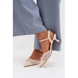 Dámské sandály na podpatku s síťkou světle béžové Brilora