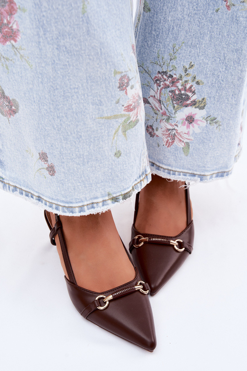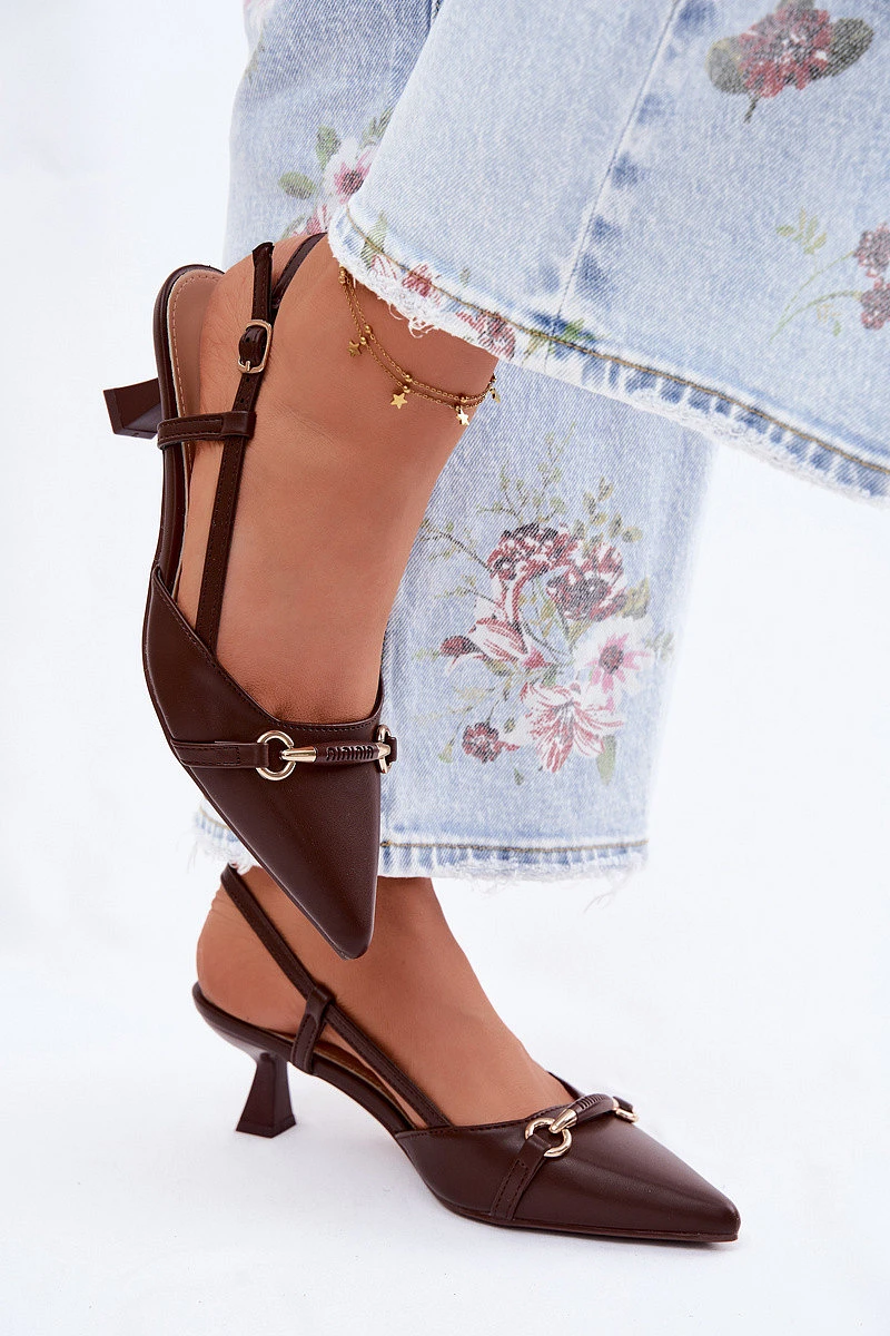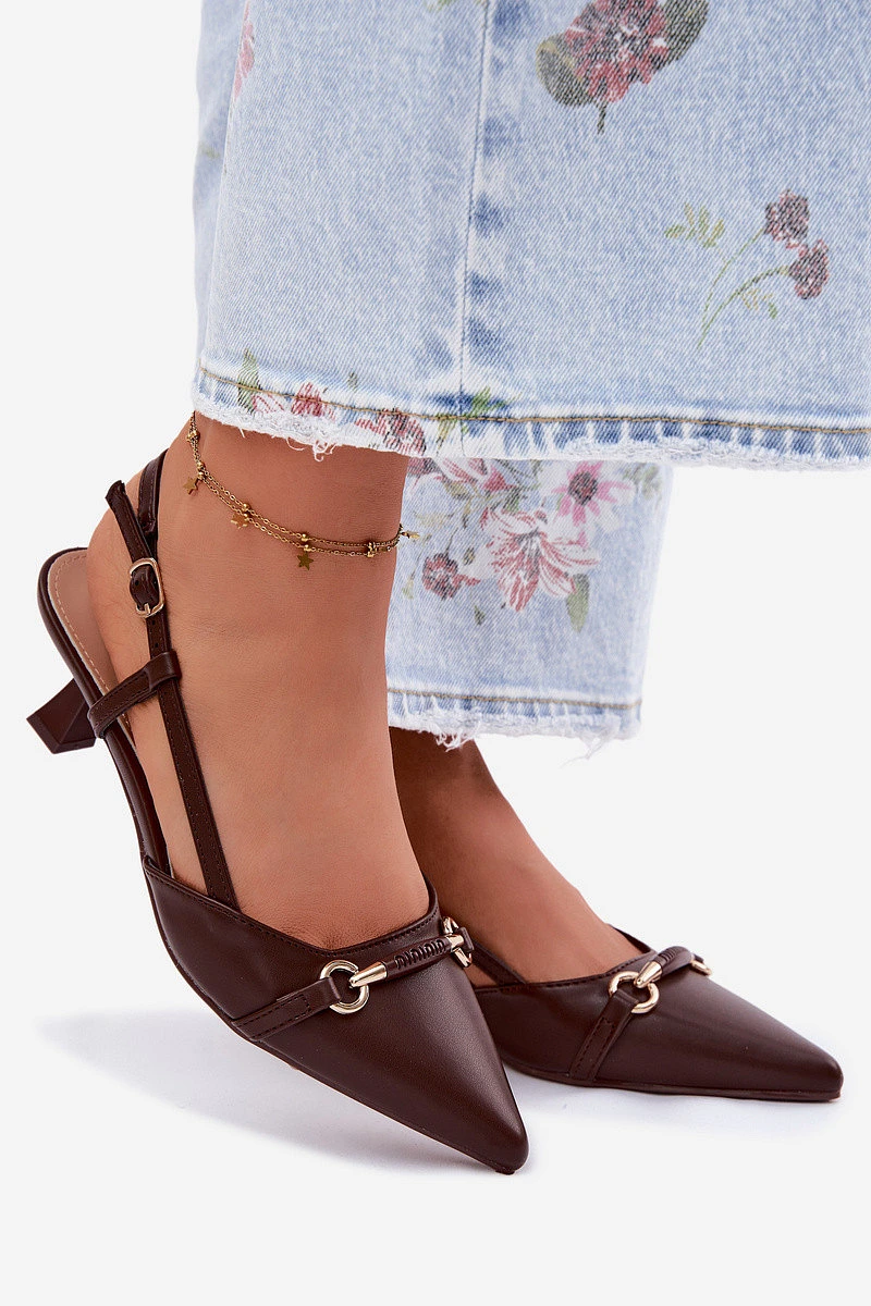Dámské sandály na podpatku se špičatými špičkami Hnědé Felessa