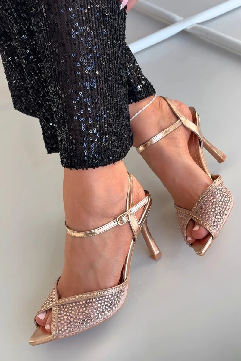 Dámské sandály na podpatku se zdobením šampaňské Peloria