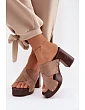 Dámské sandály na podpatku se zlatými přezkami Camel Nerelle
