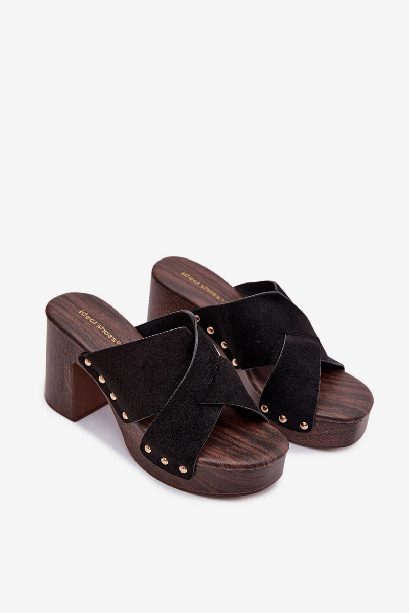 Dámské sandály na podpatku se zlatými přezkami Černé model 21951481 - Boto