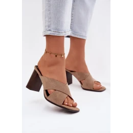 Stylové dámské nazouváky vyrobené z eko semiše. Vepředu jsou dva proplétající se pásky, které efektně zvýrazňují nohu a dodávají celku módní charakter. Podpatek typu sloupek zajišťuje stabilitu a pohodlí při nošení, zároveň dodává siluetě lehkost. Tento model se skvěle hodí jak do každodenních, tak i do elegantnějších letních stylizací. Při výběru velikosti se řiďte tabulkou velikostí.