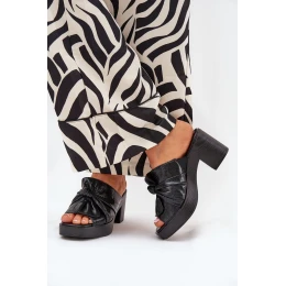 Dámské Sandály Na Podpatku Z Eko Kůže Černé Kikilla
