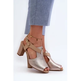 Dámské sandály na podpatku z eko kůže zlaté Queenmarie
