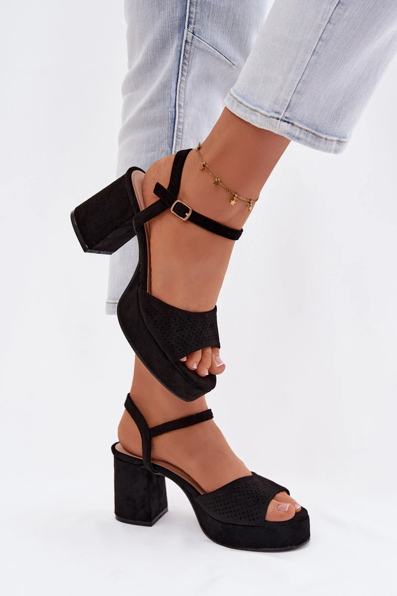 Dámské sandály z eko semiše jsou stylovou volbou na letní dny a zvláštní příležitosti. Kombinace stabilního sloupkového podpatku s platformou zajišťuje pohodlí při nošení a jistotu kroku, zároveň efektivně zvýrazňuje siluetu. Nastavitelný pásek s přezkou kolem kotníku umožňuje dokonalé přizpůsobení obuvi noze. Tento model je ideální jak na večírky, tak na elegantní výlety. Při výběru velikosti se řiďte tabulkou velikostí.