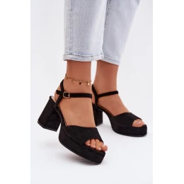 Dámské sandály na podpatku z eko semiše Černé Iserelle