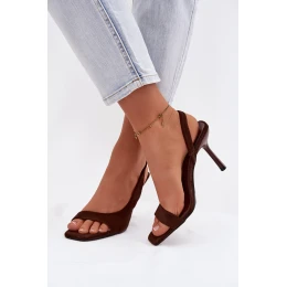 Dámské sandály na podpatku z eko semiše čokoládové Calvoria