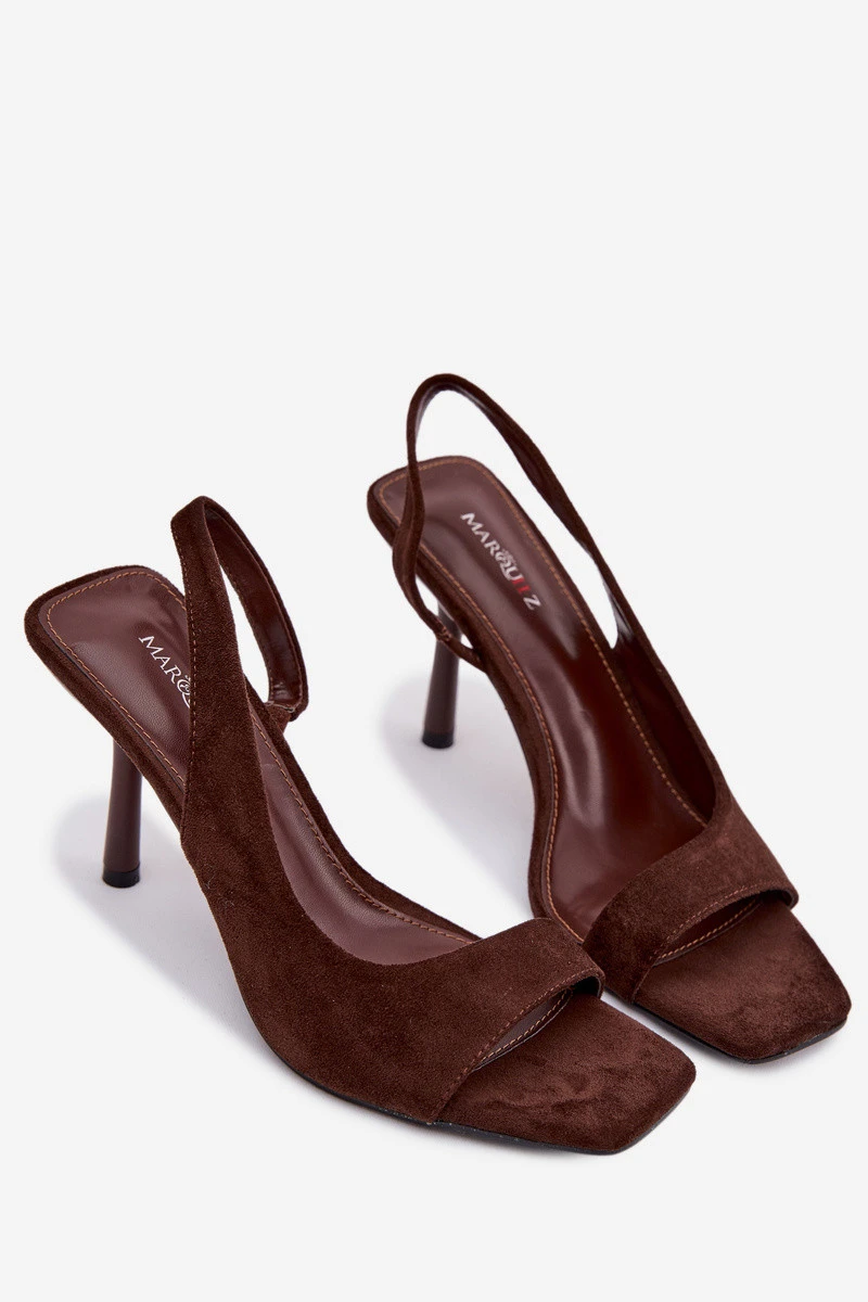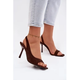 Dámské sandály na podpatku z eko semiše čokoládové model 21951621 - Boto
