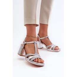 Dámské sandály na podpatku z ekokože stříbrné Lyana