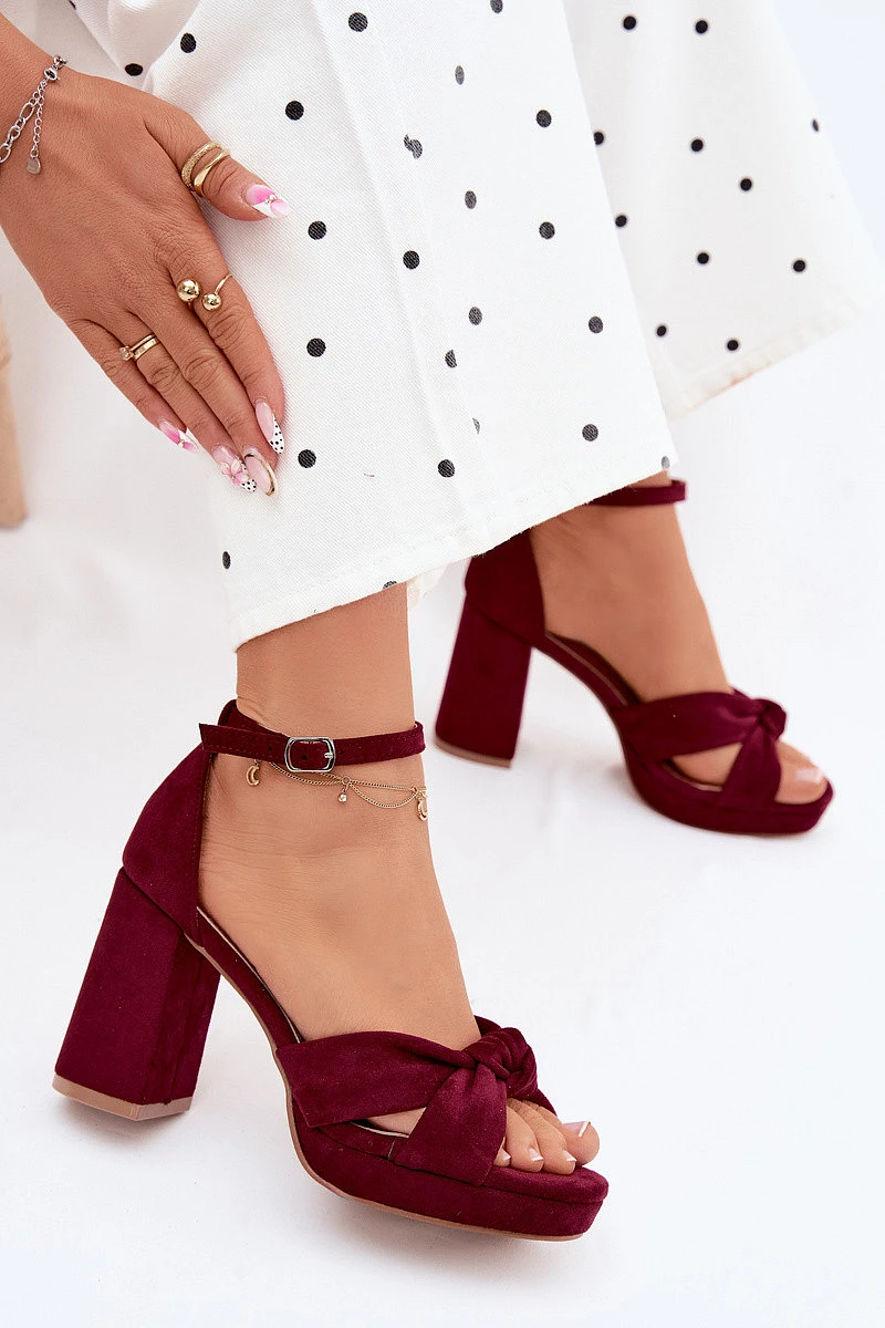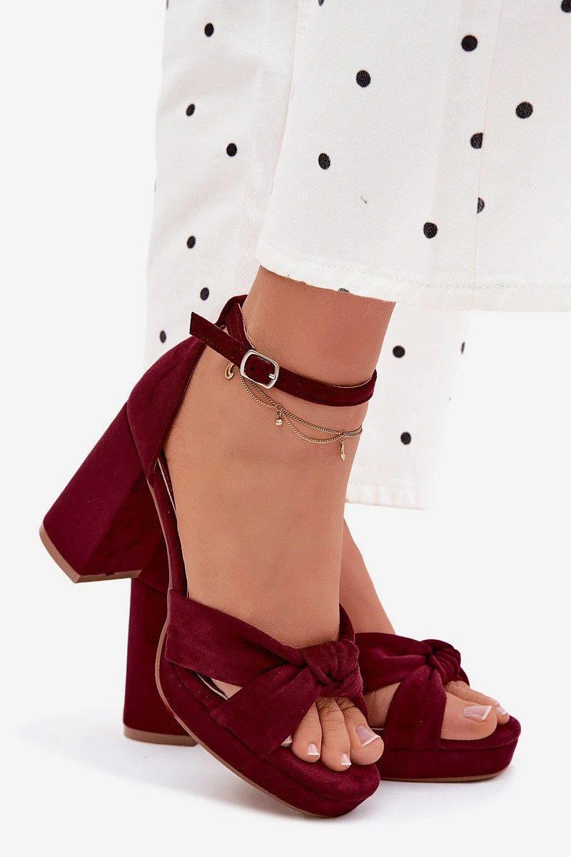 Dámské sandály na podpatku z imitace semiše bordové model 22107184 - Boto