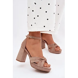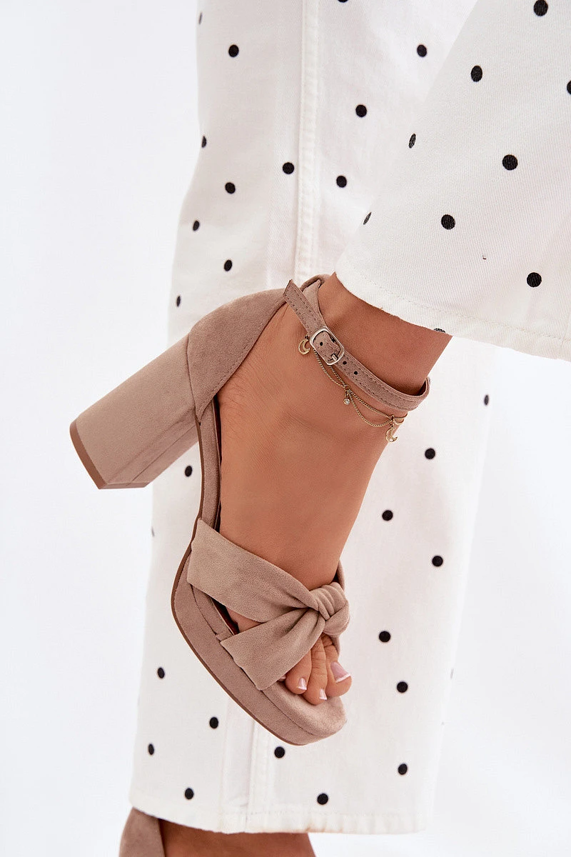 Dámské sandály na podpatku z imitace semiše tmavě béžové model 22107156 - Boto